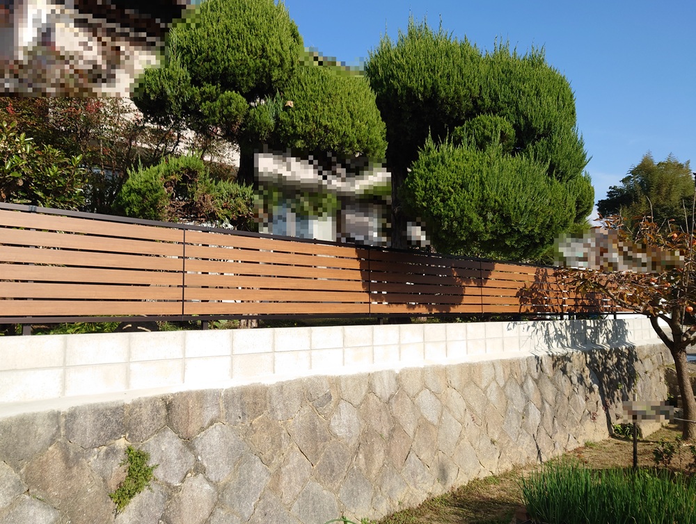 「自宅のブロック塀が老朽化して危ないので撤去したい」とのご依頼を頂きました。現地調査を行った結果、ひび割れや傾き、爆裂現象による破損などが多く見られました。ブロック塀の下はお客様の畑になっていて、現状のままで畑作業をするのは大変危険な状態でした。畑が荒れない様にしっかりと養生をして、危険なブロック塀はすべて撤去しました。その後、新しくブロックを2段積んでからフェンスを設置しました。工事完了後、仕上りも満足して頂き、大変喜んで頂けました。老朽化したブロック塀が隣地の建物や歩道を通行中の人に倒れてしまえば、大変なことになってしまいます。ご自宅のブロック塀などの状態が心配な場合は、弊社へご相談ください。(危険なブロック塀の判断の仕方についてはこちらを参照)